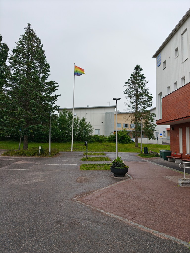 Maanantaina ja tiistaina kaikki liput saivat olla rauhassa, mutta keskiviikkona 25.6.2025 iltapäivällä kunnantalon lipputangosta oli Pride-lippu varastettu.